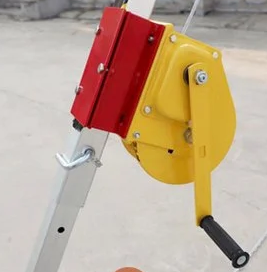 手搖絞盤通常安裝在救援三腳架上,通過搖動手搖絞盤,鋼絲繩可以自由的收放,實現(xiàn)人員的上下操作。這種設(shè)計使得在復(fù)雜多變的救援環(huán)境中,能夠快速有效地進行人員轉(zhuǎn)移或重物提升。鋼絲繩的轉(zhuǎn)動纏繞機制,實現(xiàn)了重物的升降操作,而且由于是手動操作,可以根據(jù)實際的升降情況自行調(diào)節(jié)升降速度,使工作更加安全可控。