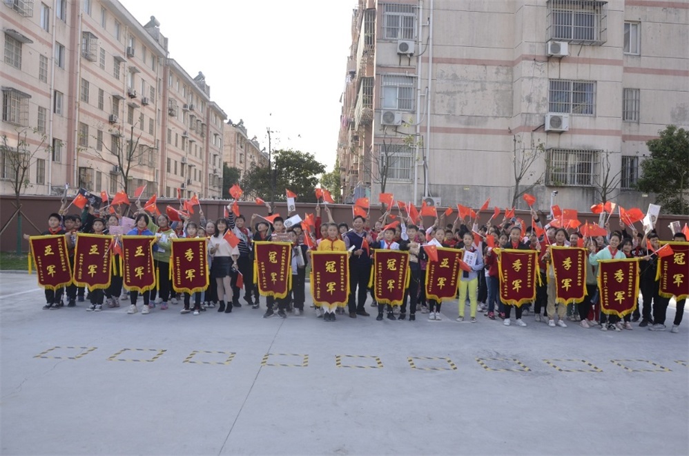 首先進行的是“長龍擺尾繞櫈子”,十個孩子雙手抓住前面小伙伴的衣服,接成一條小長龍,沿十個櫈子“S”形折返跑。其次進行的是“八字穿花跳長繩”。面對跳動著的長繩,有些同學面露怯色,不敢上前,經過一番激烈的思想斗爭后,在同學們的鼓勵下,沖破心理障礙,躍過這只“攔路虎”。隨后進行的是“乒乓運球接力賽”,面對頑皮的乒乓球,同學們有的小心呵護,有的飛速傳遞,小小的乒乓球也感受到了歡樂,在一群孩子間飛舞跳動。最后進行的是“急速60秒”,這是一項考驗知識面的游戲,26張卡片,以文字、圖形、寓意、諧音等方式代表了不同的數字。要求同學們分三輪,每輪60秒的時間識別并排列。經過近一個小時的緊張角逐,四項比賽一一決出勝負,獎項也被紛紛收入囊中。最后,六(二班)以三個冠軍,一個亞軍成了此次活動的贏家;六(一)班以三個亞軍,一個季軍緊隨其后,六(三)班以一個冠軍,三個季軍位列第三。