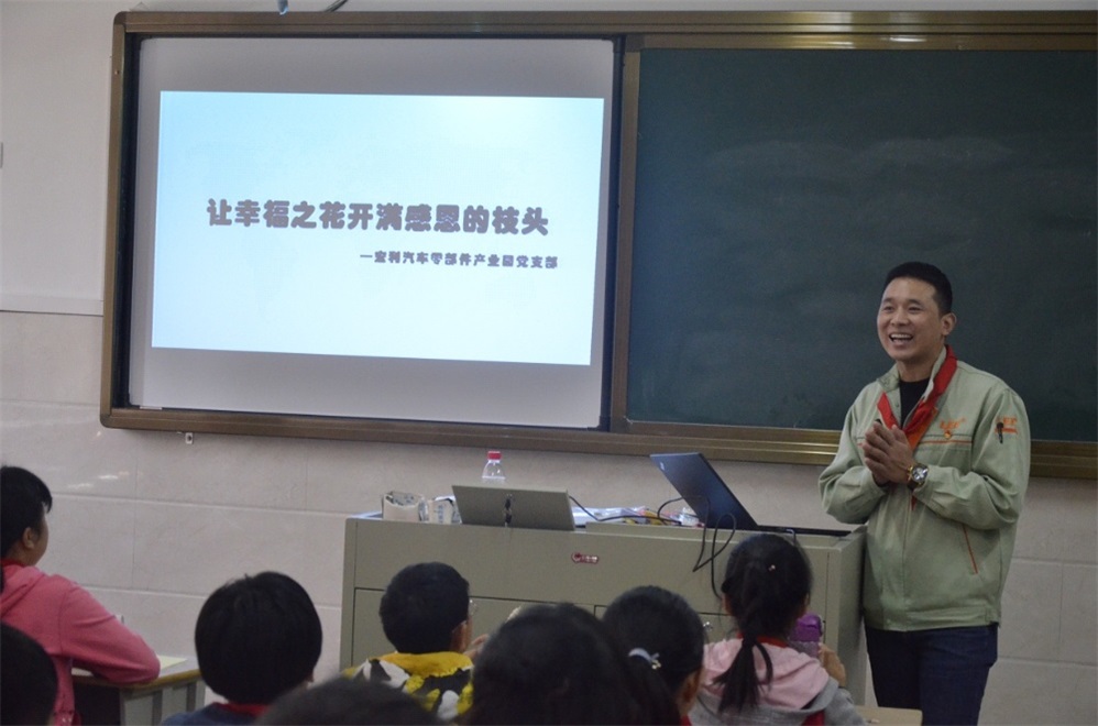 在一片掌聲中開始了今天的活動。第一個環節是“讓幸福之花開滿感恩的枝頭“分享。三名分享老師一走進教室即受到了孩子們的歡迎。老師從“什么是幸?!薄ⅰ叭绾胃兄腋!?、“幸福來源于感恩”三個方面與同學們一起交流。分享過程中,孩子們熱情響應,老師激情陳述。當談到“如何感恩父母”時,孩子們紛紛說“不惹爸爸媽媽生氣”、“為爸爸媽媽倒水”、“幫忙洗碗”、“幫忙做家務”等等時,分享老師不禁感嘆“網絡上抨擊零零后不懂感恩”的不實之談。愛需要傳遞,當我們用愛和善去對待他人時,伙伴們也會將這份愛傳遞出去。整個分享持續近40分鐘,最后在全體同學 “我一定會孝敬長輩、尊敬老師、團結同學、刻苦學習、頑強拼搏、不辜負父母、老師的期望。對待生活,我一定會常懷感恩之心,不抱怨、講奉獻,以一顆赤誠之心回報社會” 的莊嚴宣誓中完成了此次的分享。